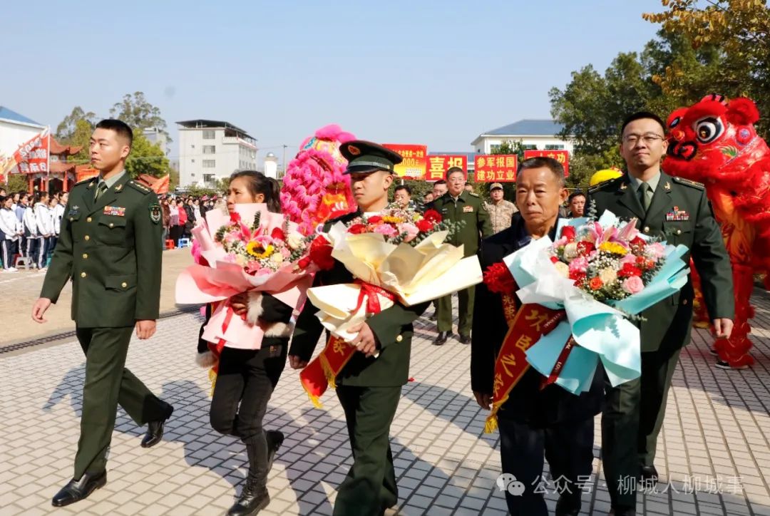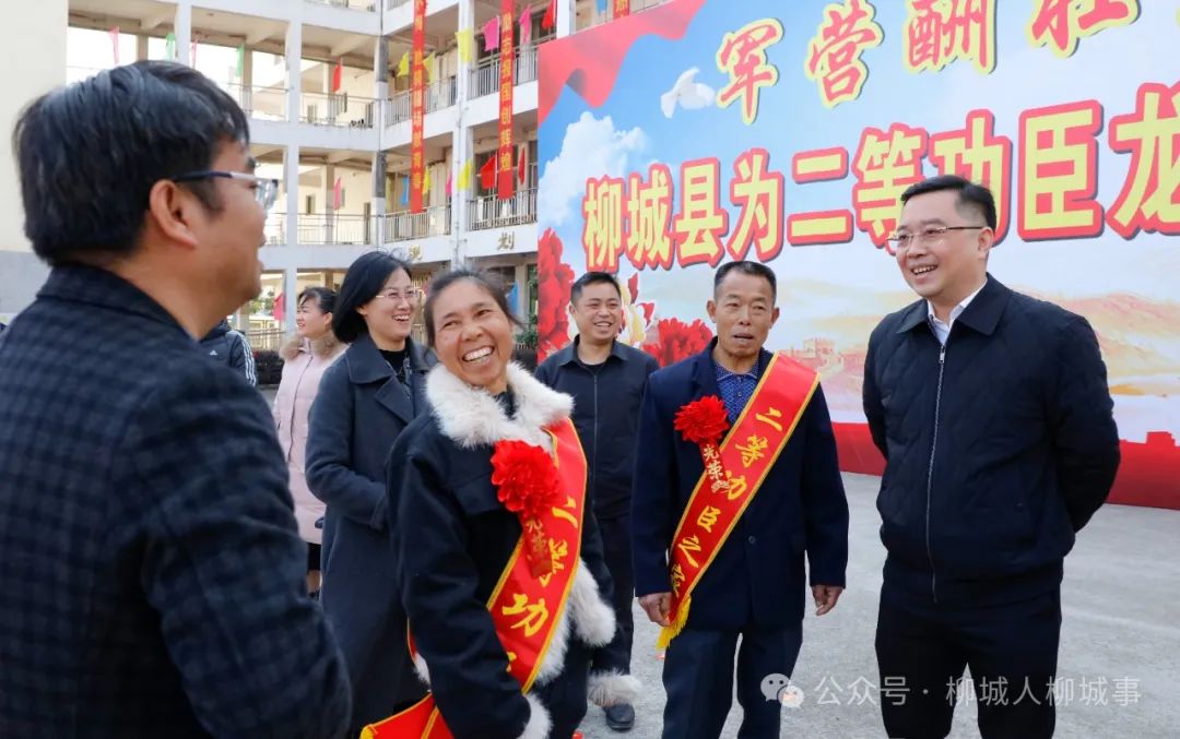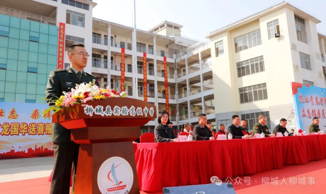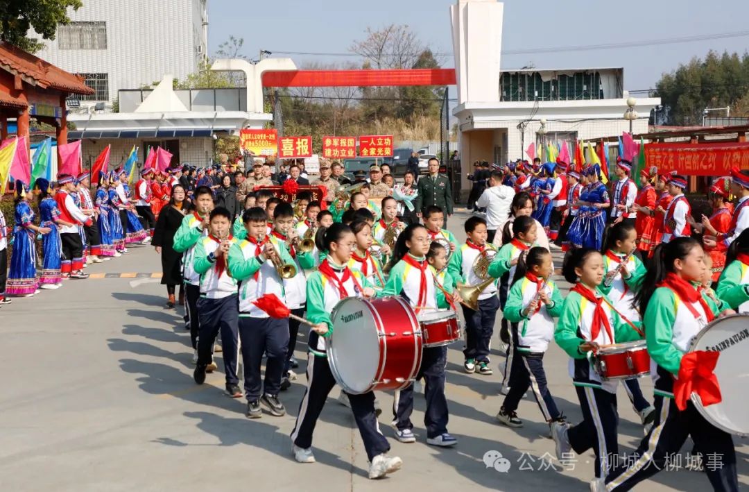 鑼鼓喧天,舞獅表演熱鬧非凡,1月16日,柳城縣在實驗高級中學開展軍地聯(lián)合送喜報活動,為榮立二等功的現(xiàn)役軍人龍國華及家屬送去立功喜報,讓軍人軍屬共享榮耀,激勵有志青年投身軍旅,建功立業(yè)。