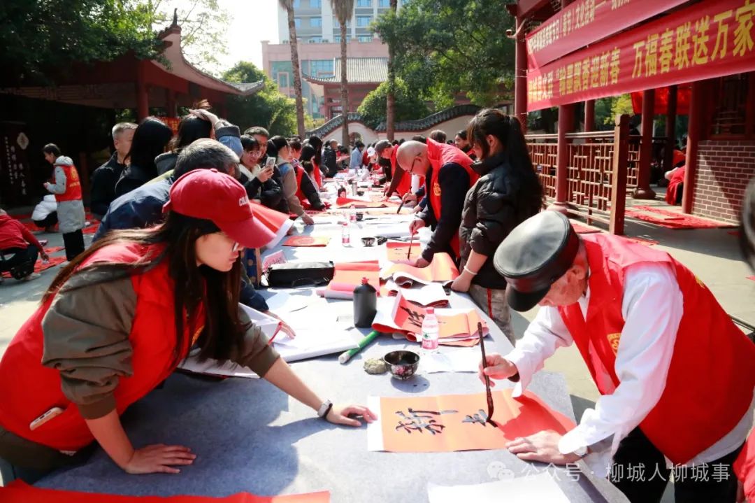 柳城縣是“廣西書(shū)法之鄉(xiāng)”。春聯(lián)作為中華優(yōu)秀傳統(tǒng)文化的一部分,是人們表達(dá)新春祝福與新年愿望的重要方式。一直以來(lái),柳城縣都有在春節(jié)前夕,聯(lián)合本土?xí)◥?ài)好者寫(xiě)春聯(lián)送祝福的傳統(tǒng),將平安、和諧、祥和的氛圍傳達(dá)給轄區(qū)群眾,共賀新春。