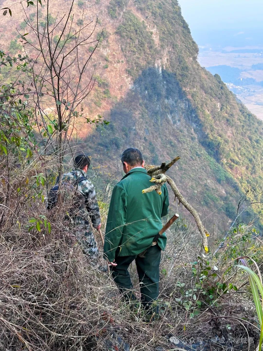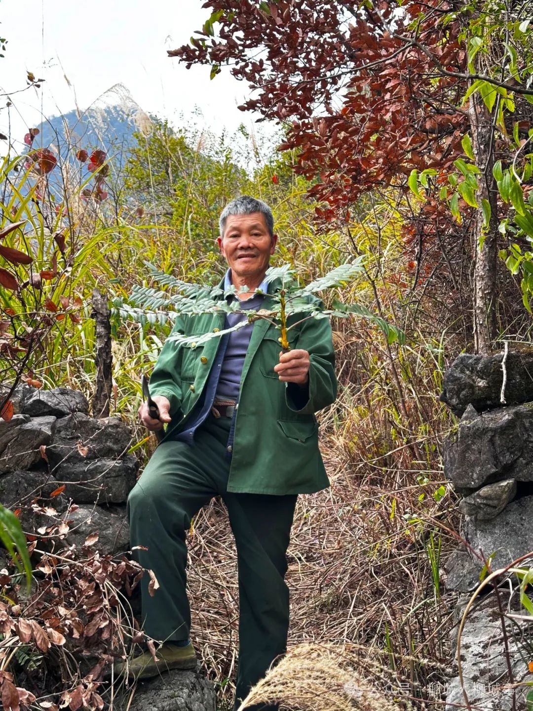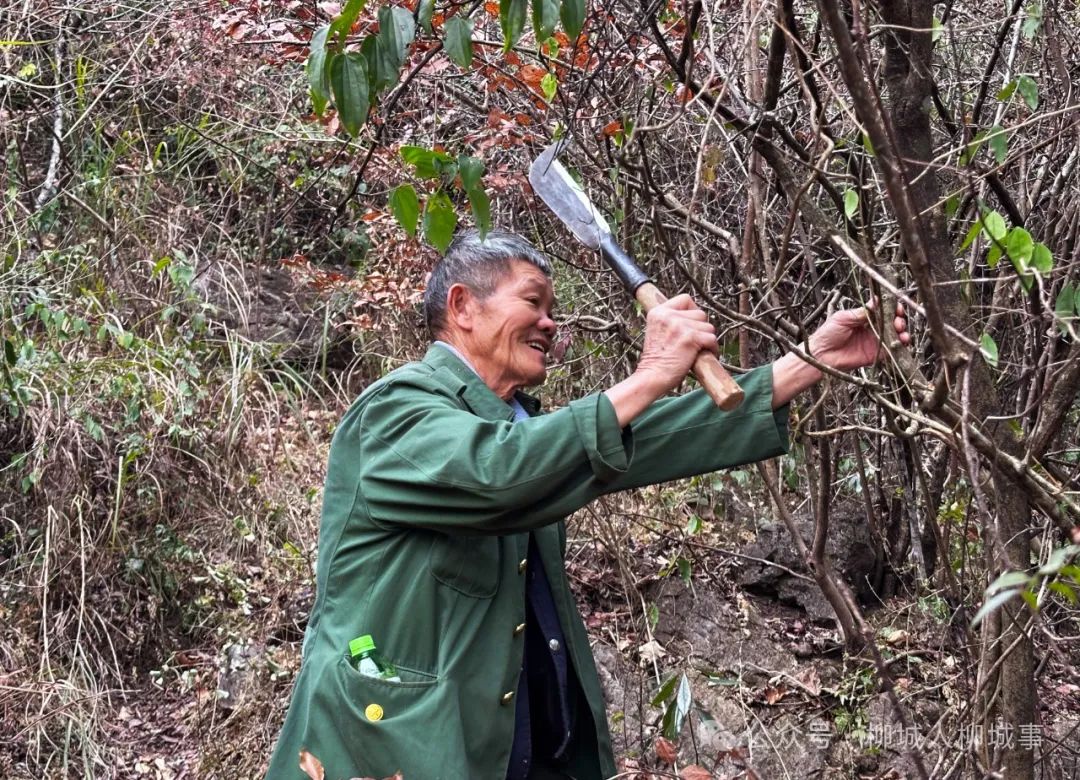 第二次見潘叔,是2024年12月的最后一天,還是在古砦海山腳下。他把柴刀拿在手上,一路砍砍修修帶我們上山,無論我們?cè)趺从脛艣_都跟不上他的腳步。他看著我們笑笑說,過了2025年1月他就滿73歲了,但是不經(jīng)常爬山的人是爬不過他的。