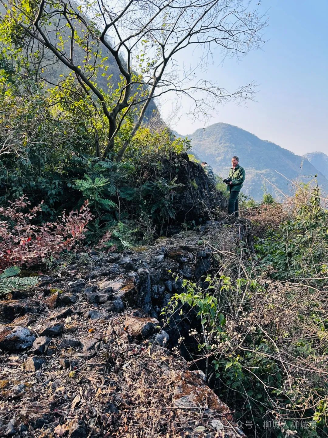 我們一次次爬這座地勢(shì)險(xiǎn)要的高山,是因?yàn)?00多年前這里筑有一座石城,并且這座石城因軍事而筑,石城現(xiàn)存的石墻于1984年8月公布為柳城縣文物保護(hù)單位。潘叔熟悉海山的一山一石一草一木,自然包括山上的石墻。