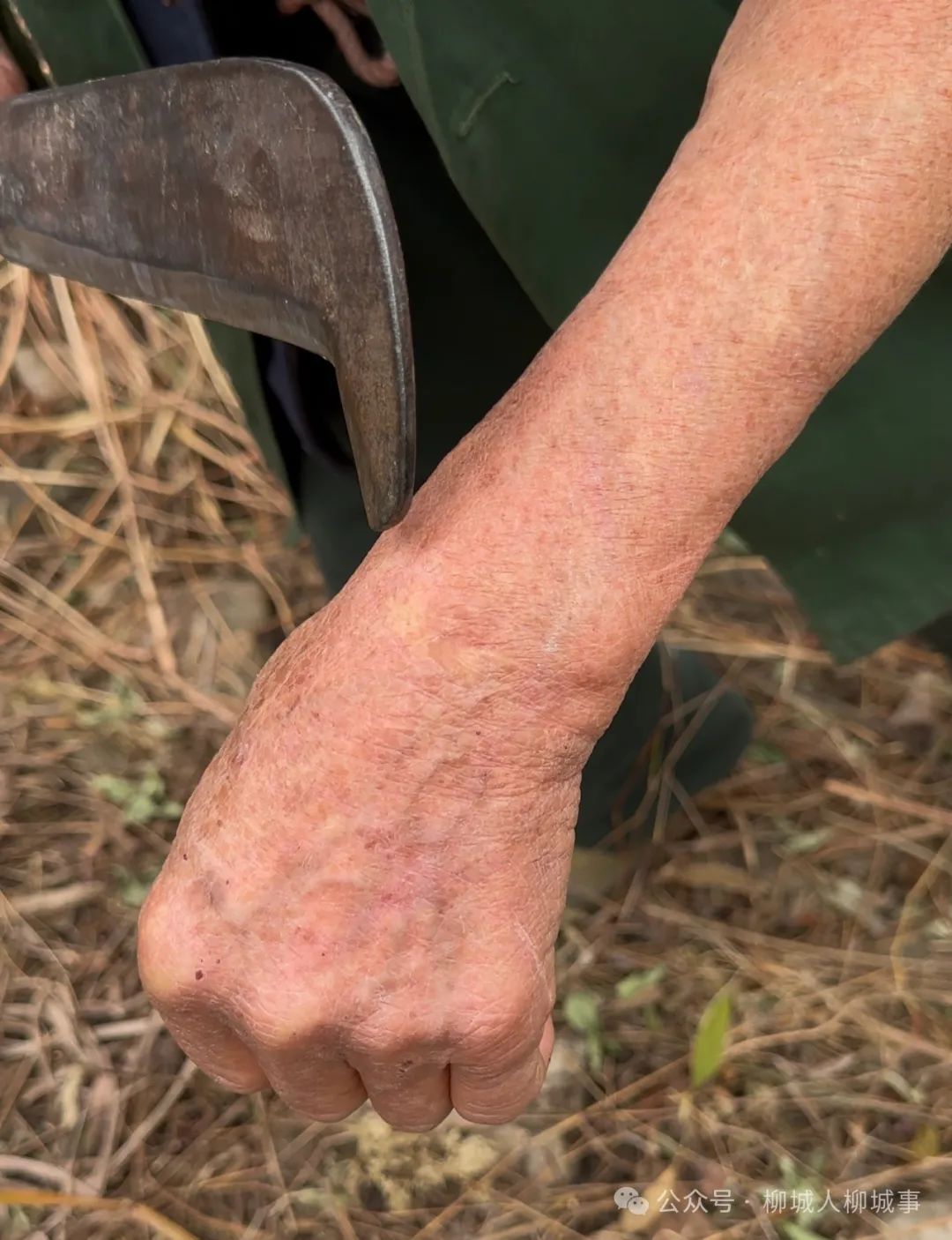 揮刀的瞬間,他手上幾道觸目驚心的刀痕把我們的視線吸引過去。他說,其中一道最深的是十七八歲上山砍柴時(shí)被柴刀砍傷的。當(dāng)時(shí)是冬天,要砍柴燒炭,因雜草太高,遮擋了左手扶著樹木的視線,手一打滑,拿柴刀的手就直接從手腕處砍了下去,砍得很深,見了骨頭??赡莻€(gè)年代很苦,既使是傷到手,第二天還是要繼續(xù)上山干活。因?yàn)橐褵鰜砟咎磕萌ソ稚蠐Q米,一擔(dān)木炭100斤,可以換得12斤米。