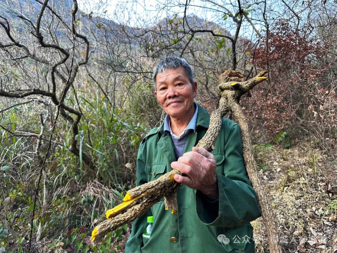山雖高險(xiǎn),但73歲的潘叔走起來卻步伐穩(wěn)健。我們走在他的身后,看他穩(wěn)穩(wěn)地扛著一大蔸偶遇的老樹黃蓮,內(nèi)心無比欽佩。