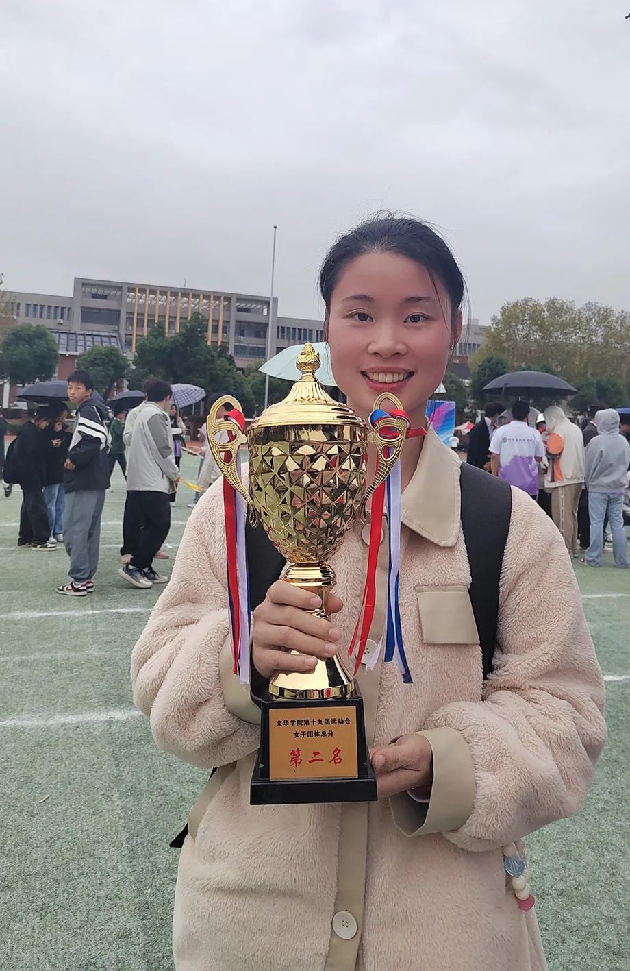 在部隊養(yǎng)成的團隊協(xié)作意識,也在她的校園生活中發(fā)揮得淋漓盡致。在組織第一次班級團建中充分調(diào)動起所有班委的積極性,齊心協(xié)力成功舉辦了團建活動,讓班級充滿了團結進取的氛圍。在文華學院第十九屆運動會上,她一個人就參加了100米、400米、800米、4×100米、3000米五項賽事,在全班同學的共同努力下,班級最終斬獲女子團體總分第二名的好成績。
