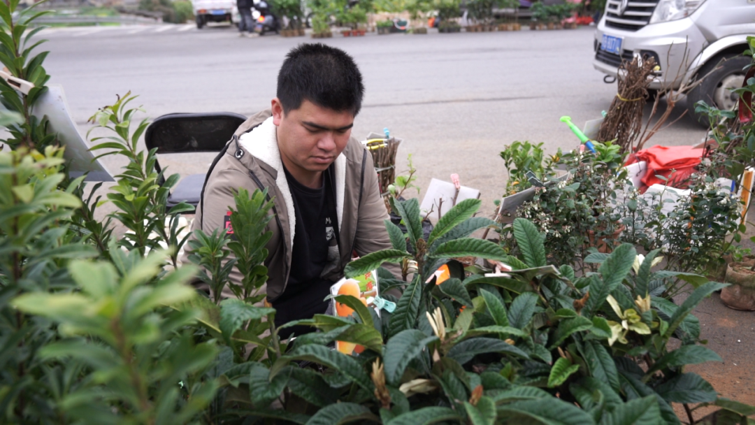 有著40年苗木販賣經(jīng)驗(yàn)的羅老板也在其中。羅老板表示,自正月初五起開始售賣苗木,至今已售出近3000棵?!拔疫@兒主要靠老客戶捧場,哪個地方逢圩日,我就往哪兒去,柳城、太平、沙塘都去,目前收益挺不錯?!绷_老板話音剛落,就有老客戶前來選購車?yán)遄訕涿?,轉(zhuǎn)眼間便成交了一棵。
