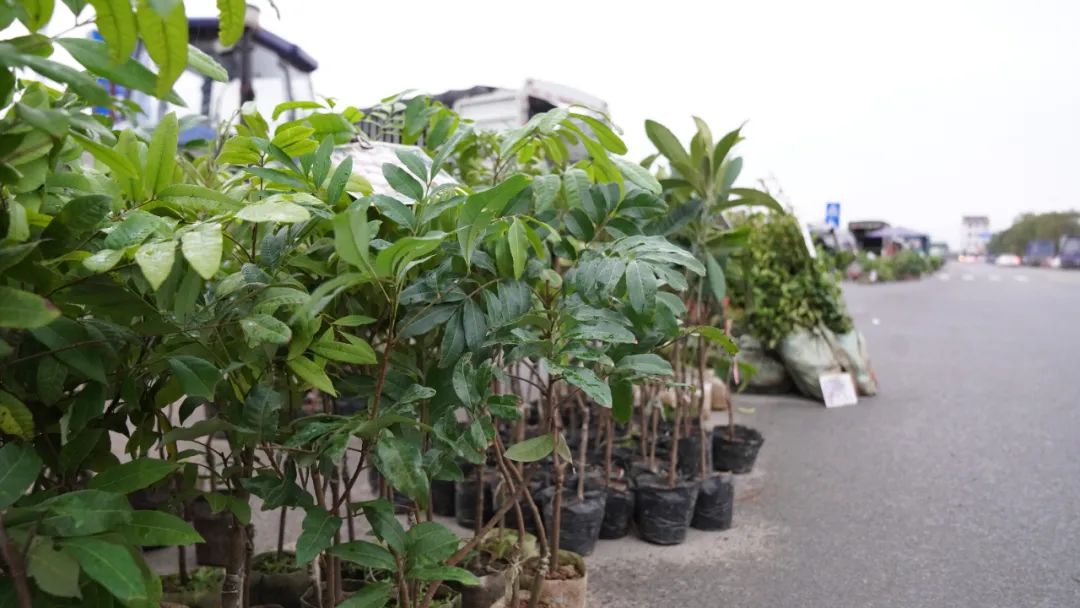 凌晨6點(diǎn),陳老板就已抵達(dá)攤位,將苗木擺放妥當(dāng)。陳老板介紹說,目前他所銷售的苗木品種多達(dá)二十余種,價格區(qū)間在每株5元至30元之間。其中,黃皮果和枇杷的樹苗最為暢銷,均價約每株10元。“黃皮果滋味酸甜,夏季食用既能滿足口腹之欲,又有消食解暑的功效,所以買的人多?!标惱习逡贿吥托闹v解,一邊有條不紊地整理著攤位前的黃皮果苗。
