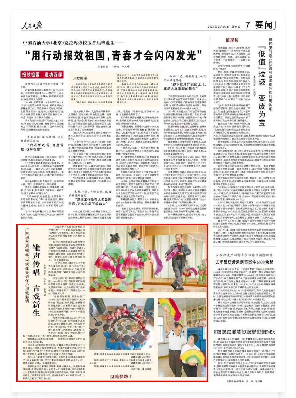 2月20日,《人民日?qǐng)?bào)》刊發(fā)稿件《雛聲傳唱?古戲新生》,關(guān)注柳城縣周錫生、何秋萍夫婦保護(hù)柳城彩調(diào)的故事。