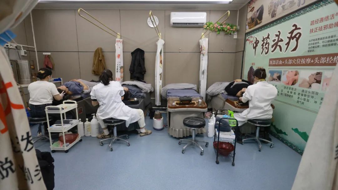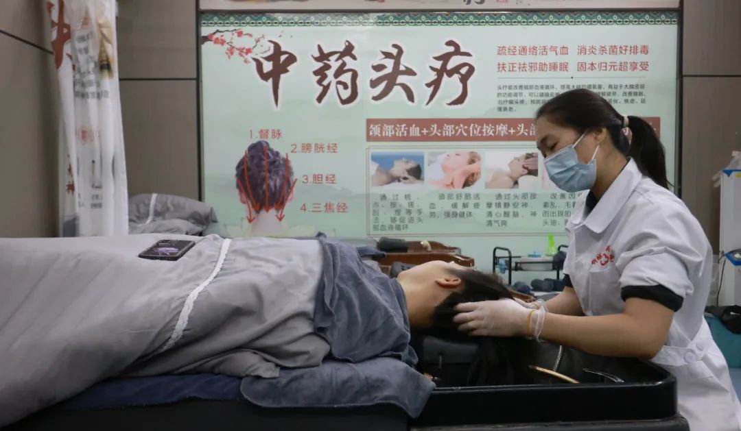 “僅中醫(yī)特色頭療一項(xiàng),2024年我們就接待群眾9555人次。”六塘鎮(zhèn)中心衛(wèi)生院公衛(wèi)科主任陸袁明介紹,中醫(yī)洗頭并非簡(jiǎn)單的清潔,而是依據(jù)中醫(yī)經(jīng)絡(luò)學(xué)說(shuō),通過(guò)特制的中藥洗發(fā)水和專業(yè)的按摩手法,刺激頭部穴位,促進(jìn)血液循環(huán),達(dá)到滋養(yǎng)頭發(fā)、緩解疲勞、改善睡眠等功效。