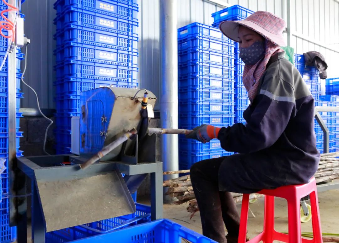 為了實(shí)現(xiàn)這樣標(biāo)準(zhǔn)化高效的生產(chǎn)模式,柳城縣鳳鑫農(nóng)業(yè)科技服務(wù)有限公司在龍頭鎮(zhèn)伏虎村上羅屯建設(shè)加工廠,投入了70多萬(wàn)元,購(gòu)置了20臺(tái)切割機(jī)、浸藥系統(tǒng)設(shè)備以及周轉(zhuǎn)筐等,主要加工“桂糖44號(hào)”“桂柳05136”等適宜本地種植的優(yōu)質(zhì)品種,為蔗農(nóng)提供更優(yōu)質(zhì)的種苗資源。