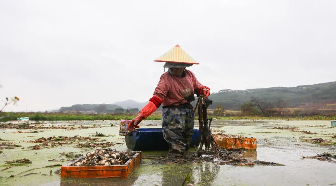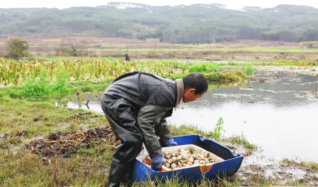 二塘村有種植茨菇的傳統(tǒng),伍忠利去年7月采收完蓮藕后便跟著其他村民一起種植茨菇,12月底進入采收期,伍忠利說:“我們二塘村的水質(zhì)比較好,再加上我們夫妻倆精心護理,色澤口感都不錯,受到顧客的青睞。”