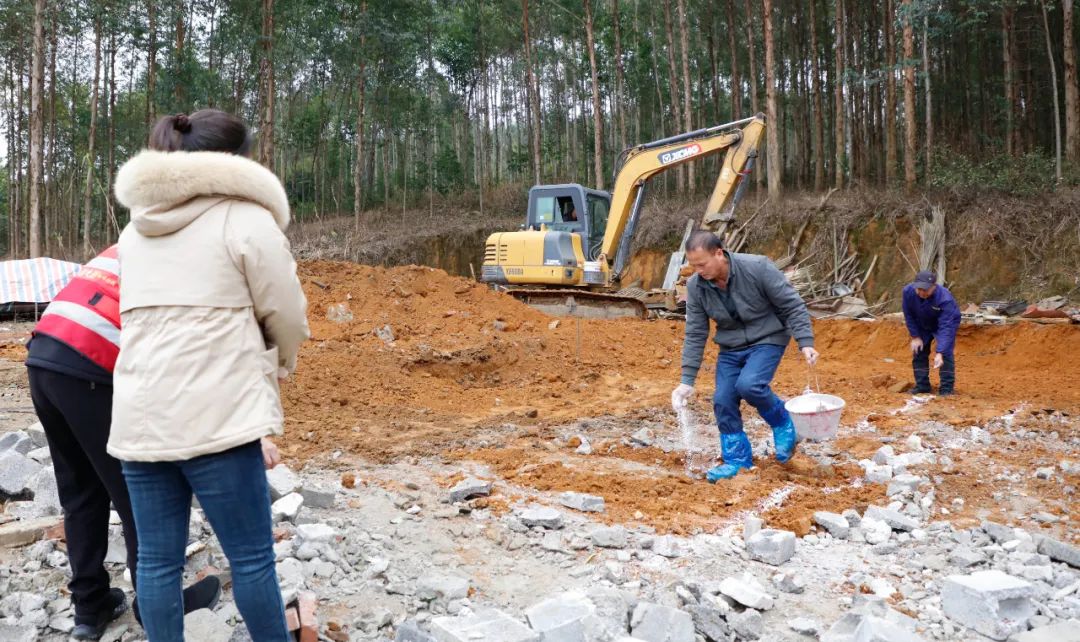 2月24日,在柳城縣東泉鎮(zhèn)雷塘村保社屯村民粟遠亮家,挖掘機揮動著長臂,破土動工。伴隨著機器轟鳴聲交織,一場特殊的動工儀式正在舉行,一起去看看怎么回事。