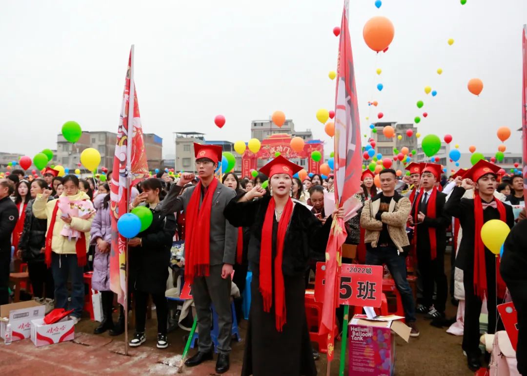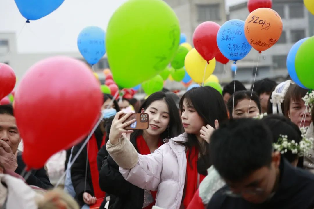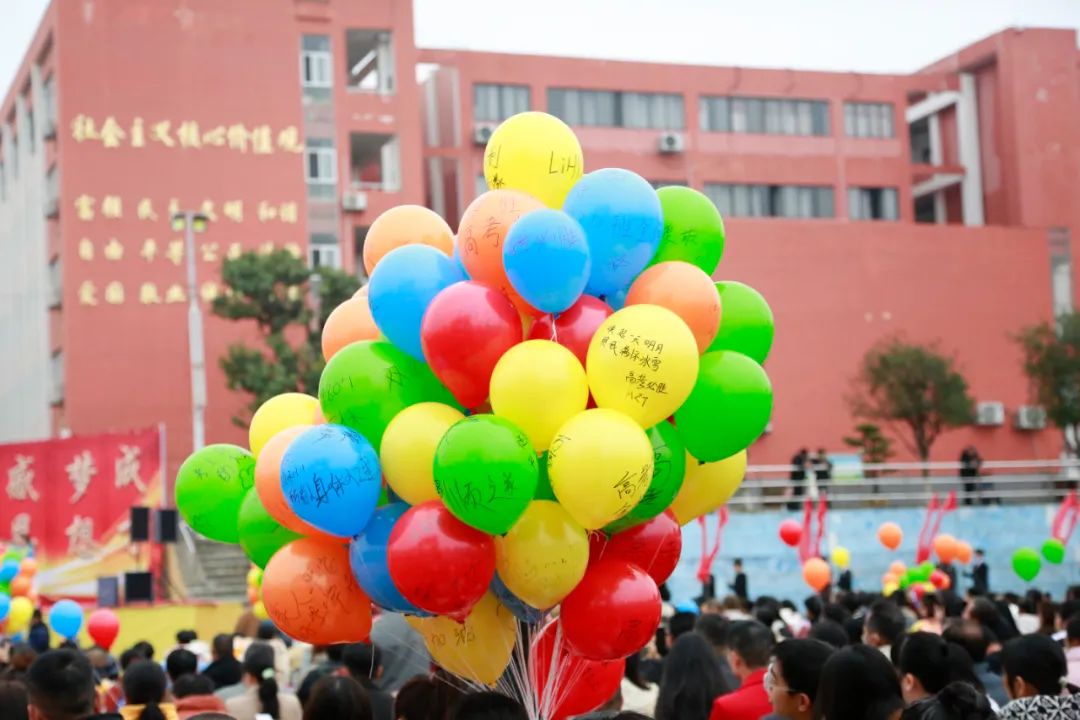 高三各班依次喊出班級口號,鏗鏘有力的誓言響徹全場,展現(xiàn)了學子們決戰(zhàn)高考的決心與信心。全體學生共同放飛夢想氣球,五彩斑斕的氣球承載著對未來的美好祝愿,在藍天中翱翔。