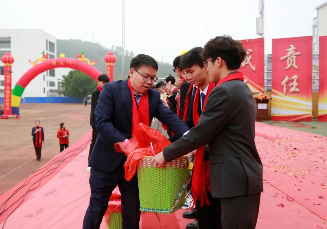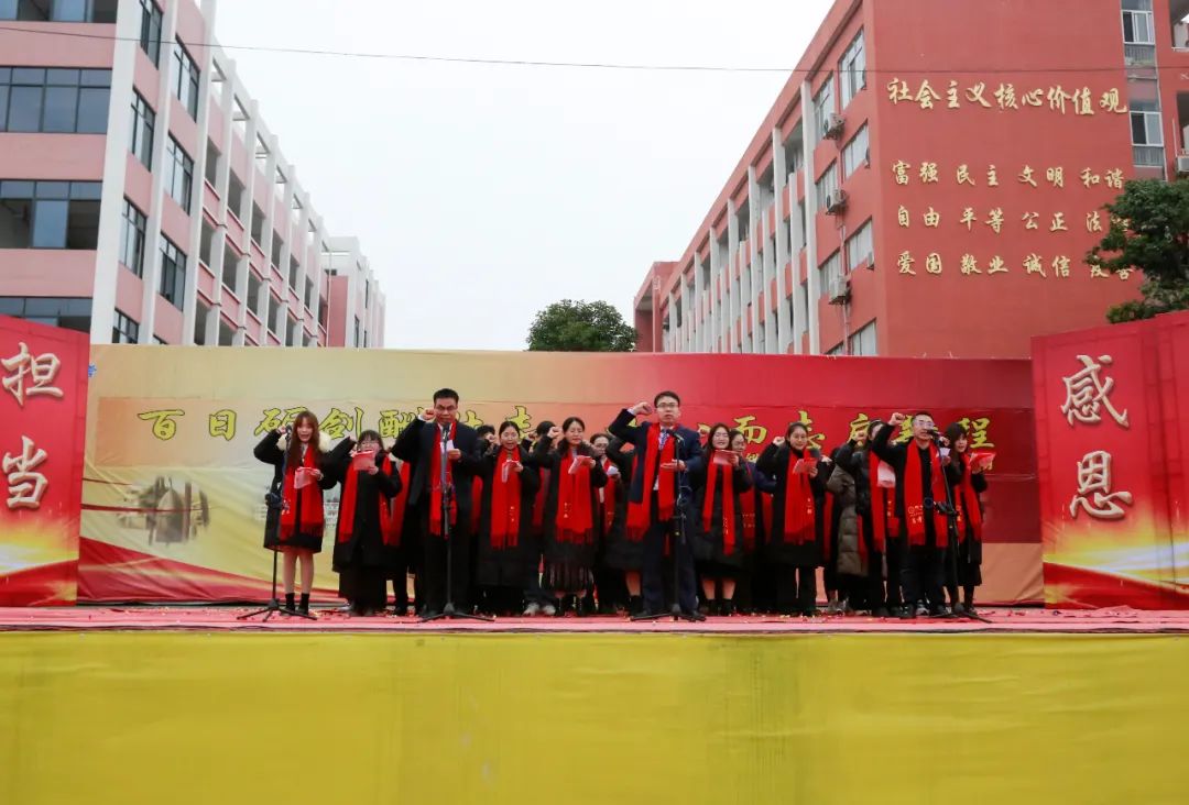 學校領導在致辭中,以《哪吒之魔童鬧?!窞橹黝},圍繞“信心、決心、恒心、靜心、細心”五個維度,勉勵高三學子珍惜最后百日時光,以拼搏精神迎接高考挑戰(zhàn)。高三全體老師莊嚴宣誓,承諾全力支持學生備考,各學科組也依次送上高考祝福,傳遞出對學生的關懷與鼓勵。