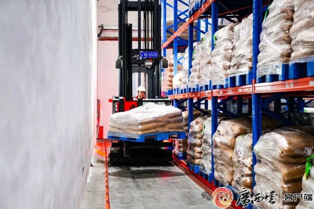 在六塘工業(yè)園的柳城縣川東磷化工有限公司廠區(qū),工人正忙著用叉車將五氧化二磷裝上集卡車。裝滿后,車子直接開往欽州,產(chǎn)品將從欽州港出海。