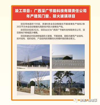 竣工項目22項,總投資18.94億元,主要包括深廣節(jié)能科技公司建筑門窗、防火玻璃項目、森碩木業(yè)公司人造板項目、展興建材科技公司鋼結(jié)構(gòu)項目等。