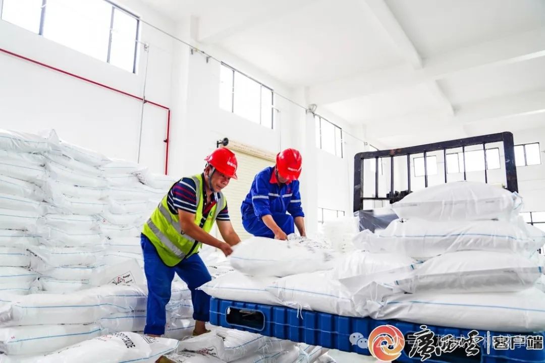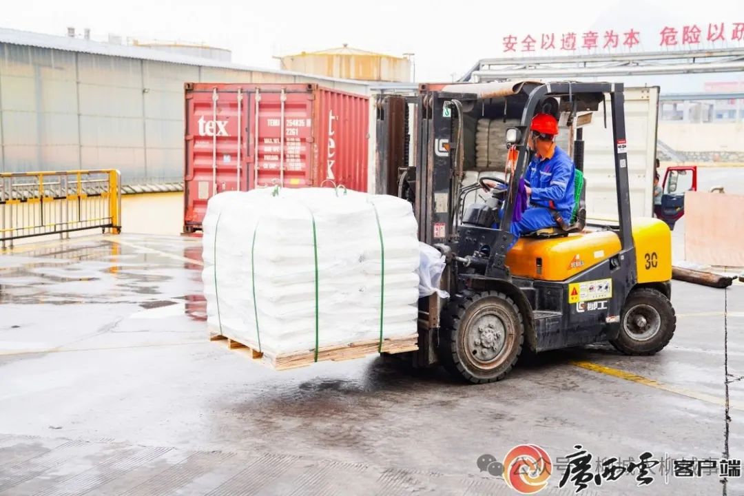 在六塘工業(yè)園的柳城縣川東磷化工有限公司廠區(qū),工人正忙著用叉車將五氧化二磷裝上集卡車。裝滿后,車子直接開往欽州,產品將從欽州港出海。