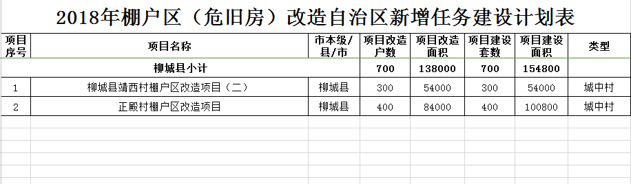 柳城縣2018年棚戶(hù)區(qū)(危舊房)改造自治區(qū)新增任務(wù)建設(shè)計(jì)劃表