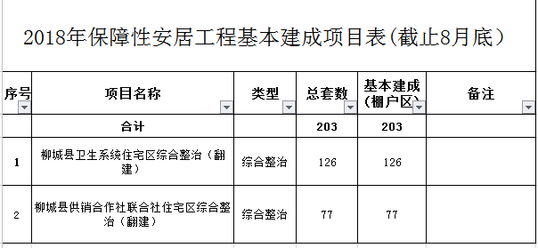 柳城縣2018年保障性安居工程基本建成項目表(截至8月底)