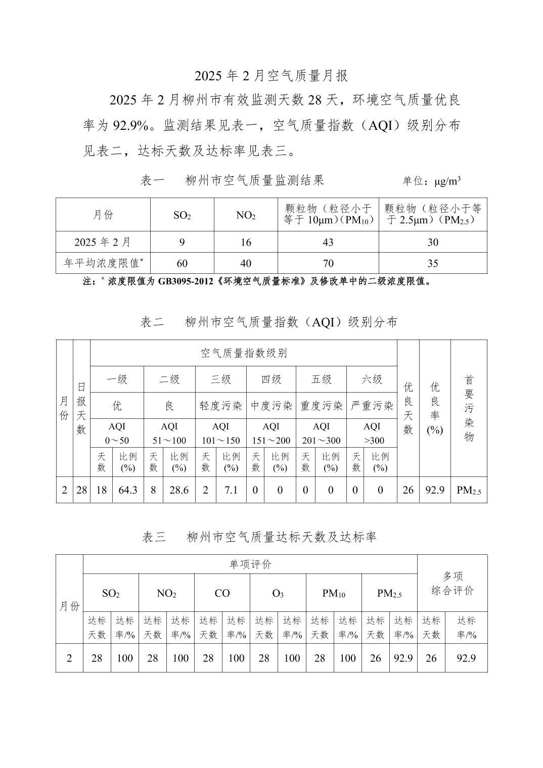2025年2月份柳州市環(huán)境空氣質量報告