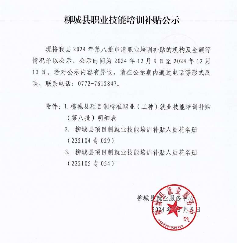 來源: 柳城縣人力資源和社會保障局  | 發(fā)布日期: 2024-12-09 16:05