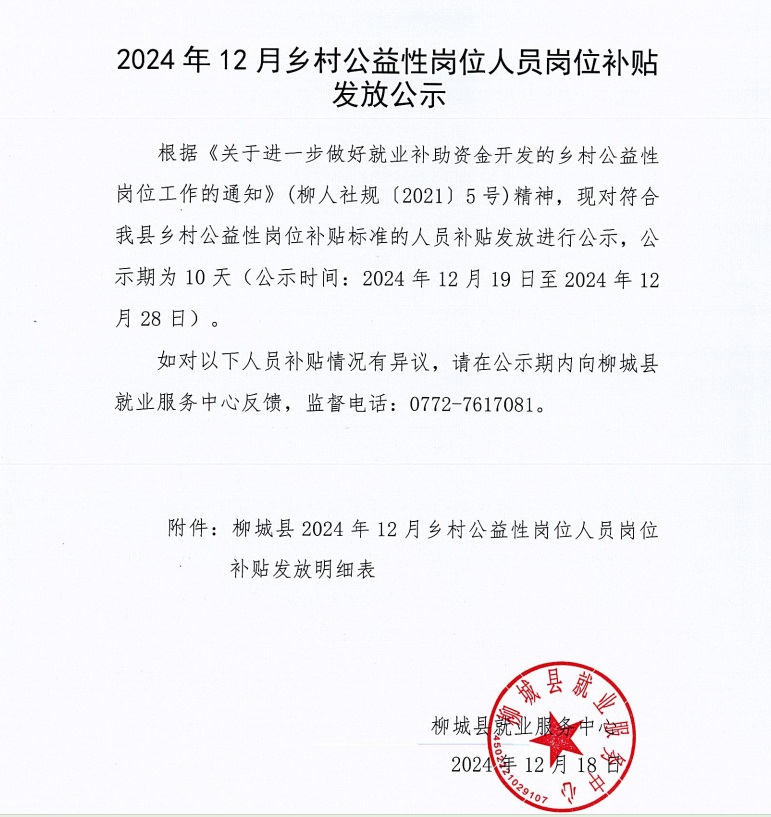 2024年12月鄉(xiāng)村公益性崗位人員崗位補(bǔ)貼發(fā)放公示