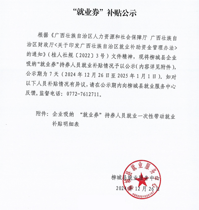 來源: 柳城縣人力資源和社會保障局  | 發(fā)布日期: 2024-12-26 11:30