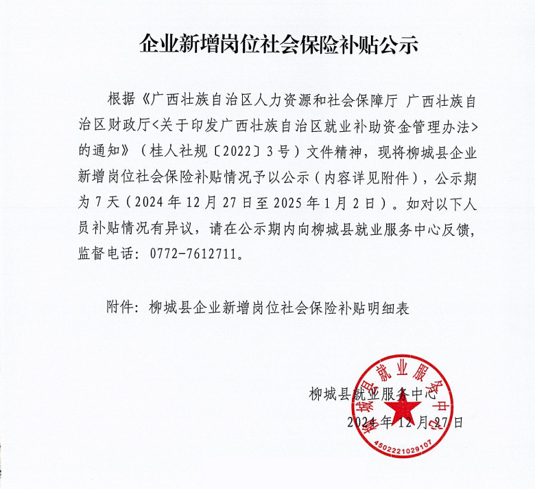 來源: 柳城縣人力資源和社會保障局  | 發(fā)布日期: 2024-12-27 09:45