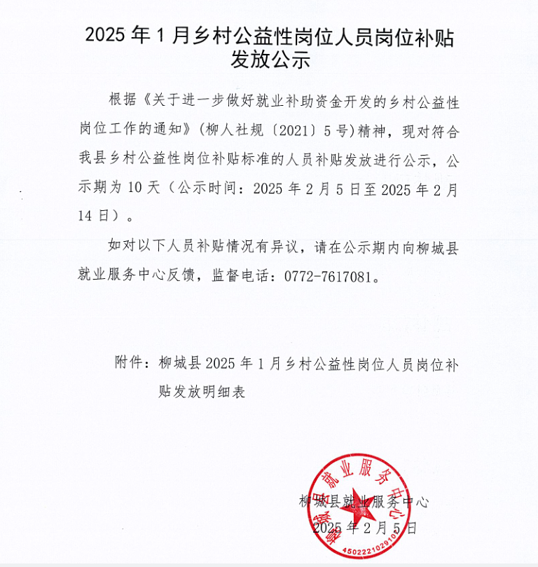 2025年1月鄉(xiāng)村公益性崗位人員崗位補(bǔ)貼發(fā)放公示