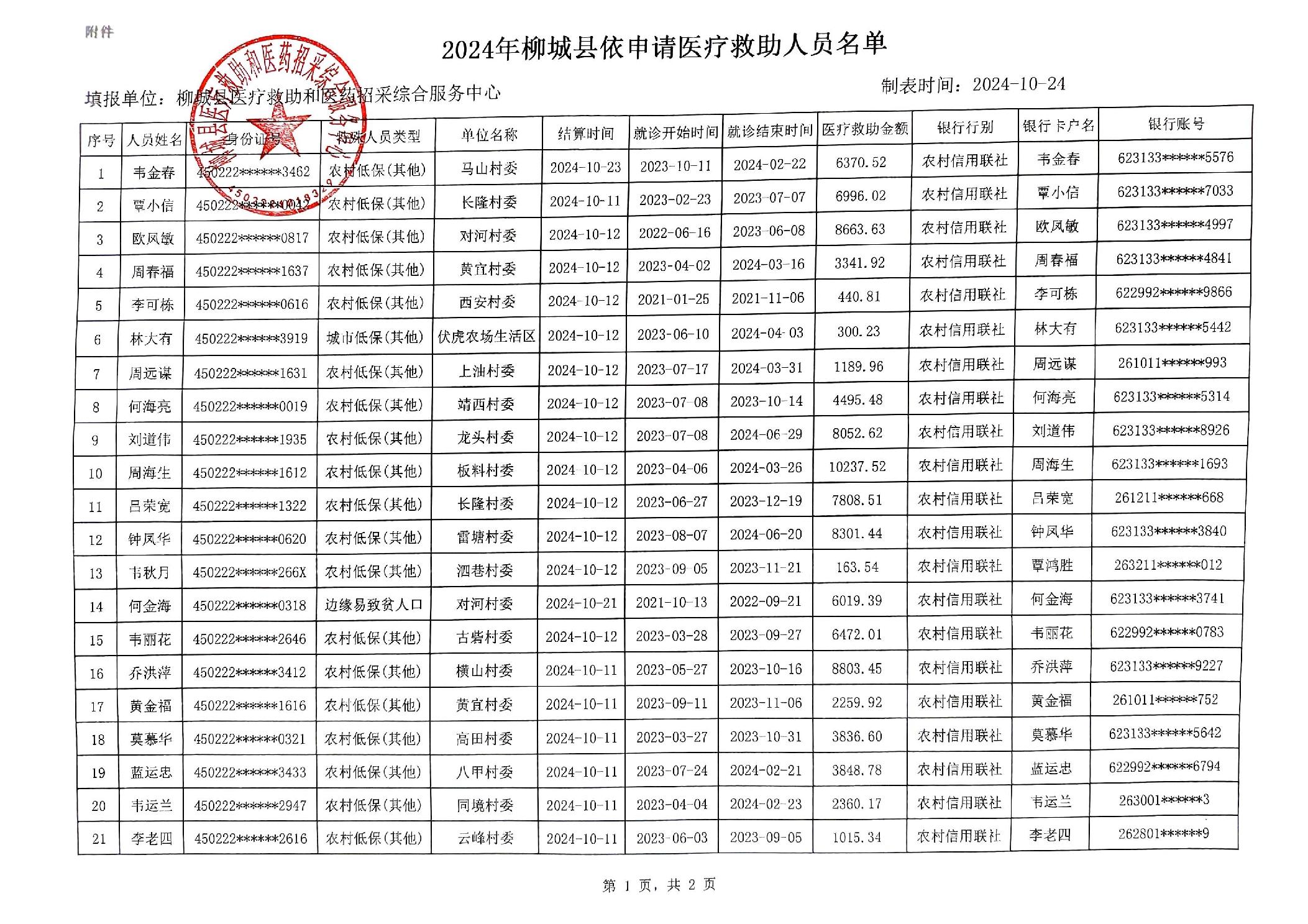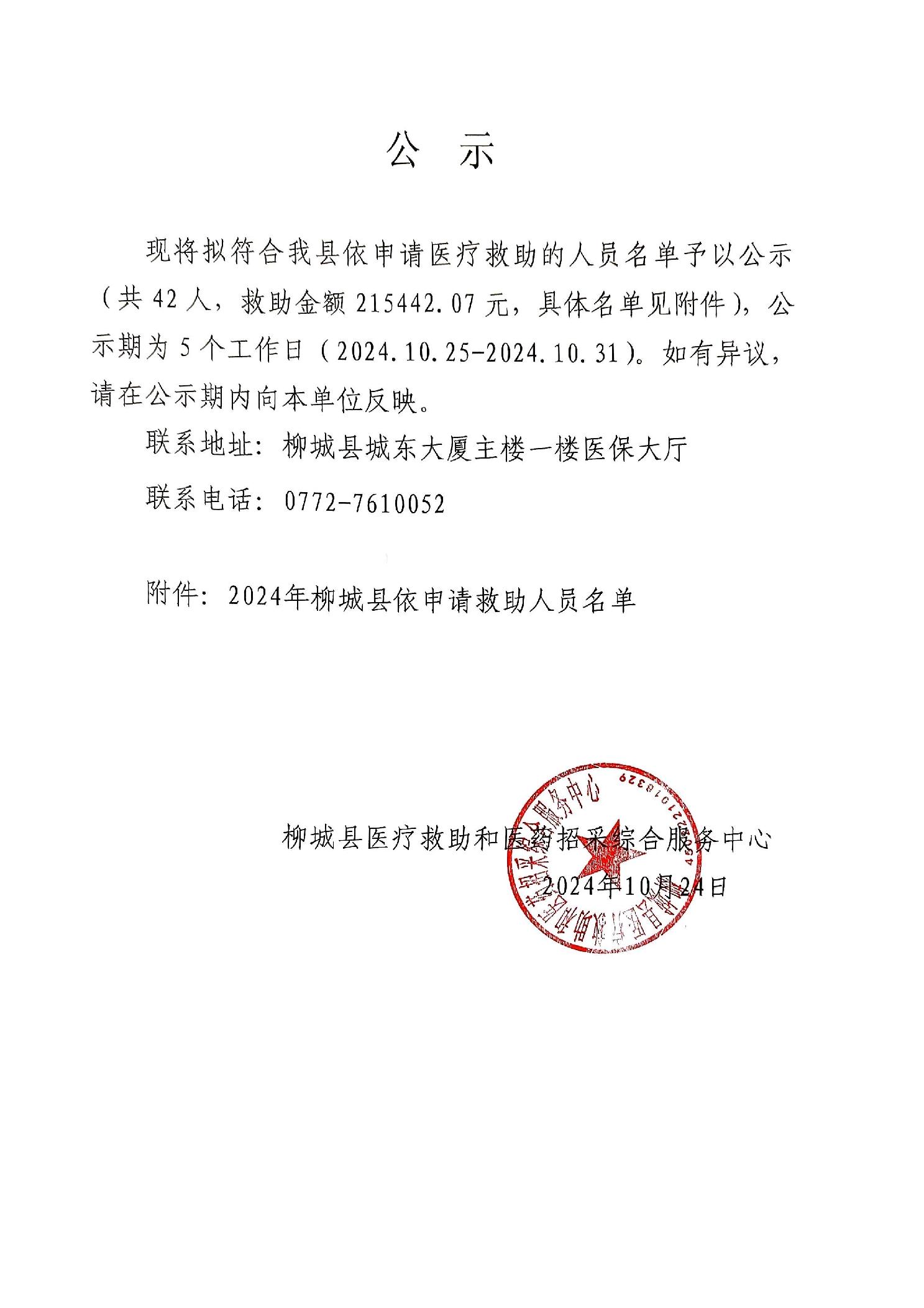 2024年柳城縣依申請醫(yī)療救助人員名單公示(第十六批)