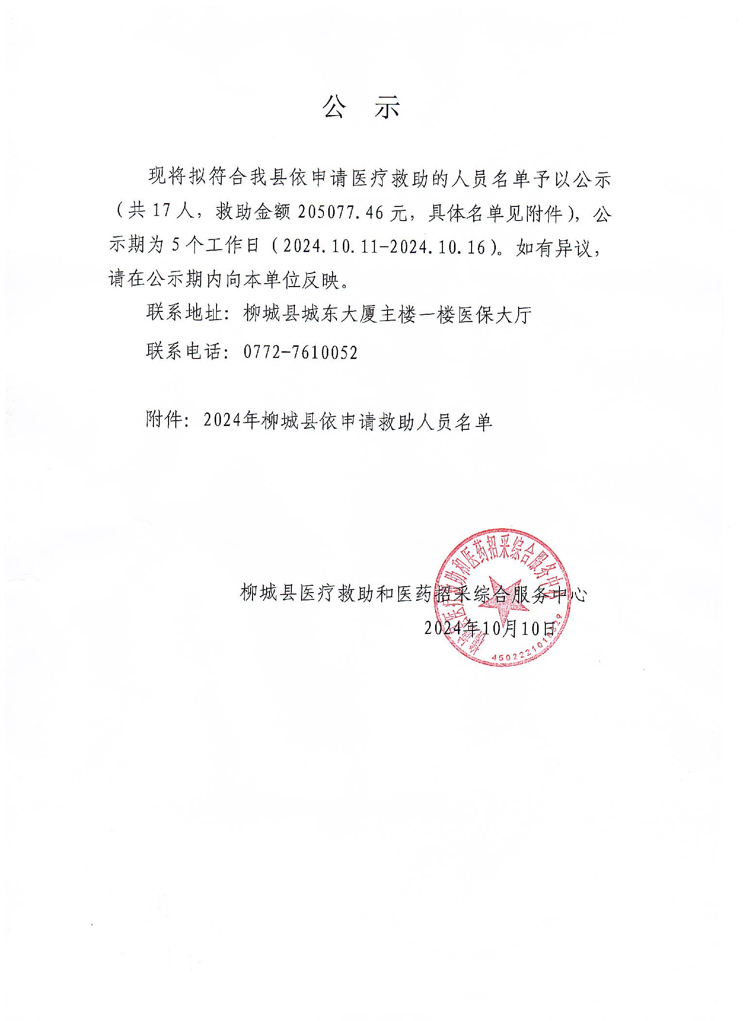 2024年柳城縣依申請救助人員名單公示(第十五批)