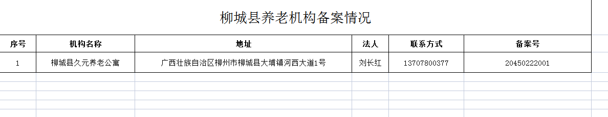 柳城縣養(yǎng)老機(jī)構(gòu)備案情況