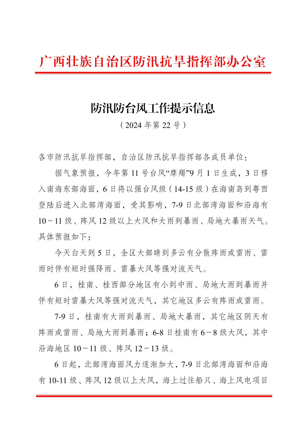 防汛防臺風工作提示信息(第22號)